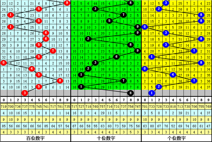 在以上统计中奖,直选212组合之后,下期奖号百位开出号码:2356789,未开出号码014,其中百位号码奇偶比为7:3,012路比为5:2:3,大小比为6:4,本期预计百位出现小 号,精选一码3。